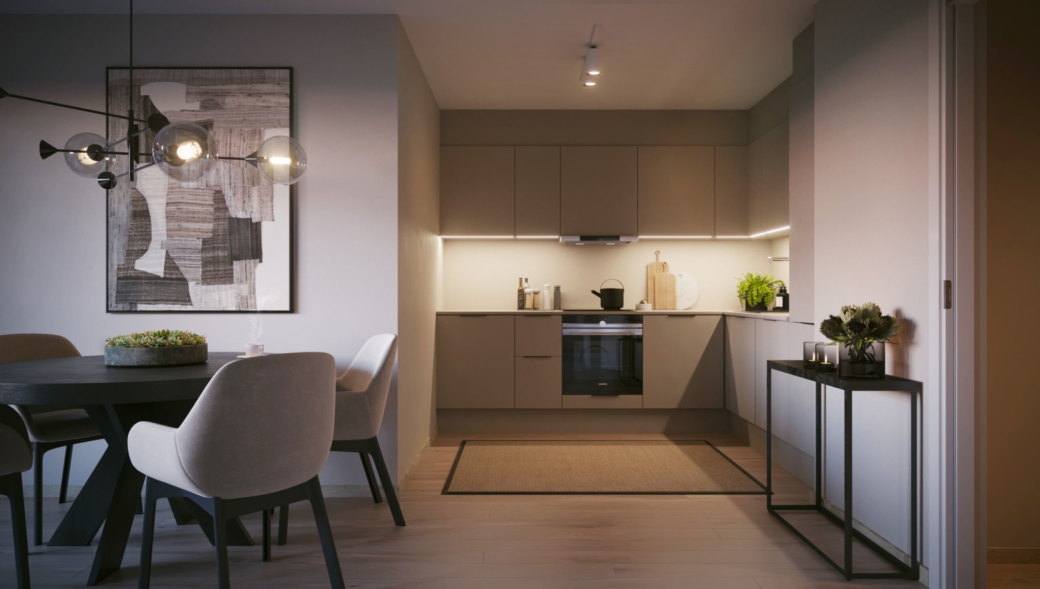 Ammerud Stasjon består av to nye bygg med til sammen 59 leiligheter. Leilighetene er 2- til 5-roms på 44–107 m² og får kvaliteter som skaper et gjennomført uttrykk. Kjøkkenet leveres fra HTH og kjennetegnes av god kvalitet i tillegg til å gi et moderne uttrykk. Enstavs matt hvitlakkert eikeparkett gir en lun stemning og harmonerer godt med den gråbeige veggfargen. Leilighetene får store vindusflater som gir mye lys og skaper en god romfølelse. De gode kvalitetene fortsetter inn på baderommet med innredning i samme utførelse som på kjøkken, og står godt i stil til de koksgrå flisene.