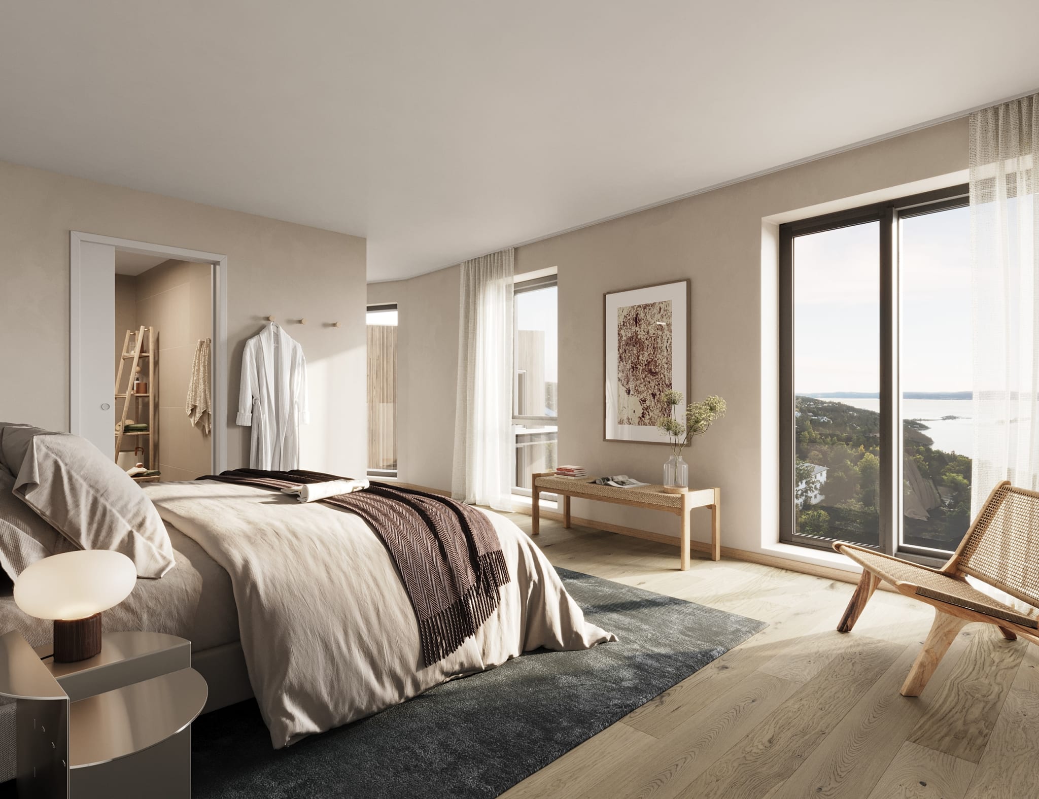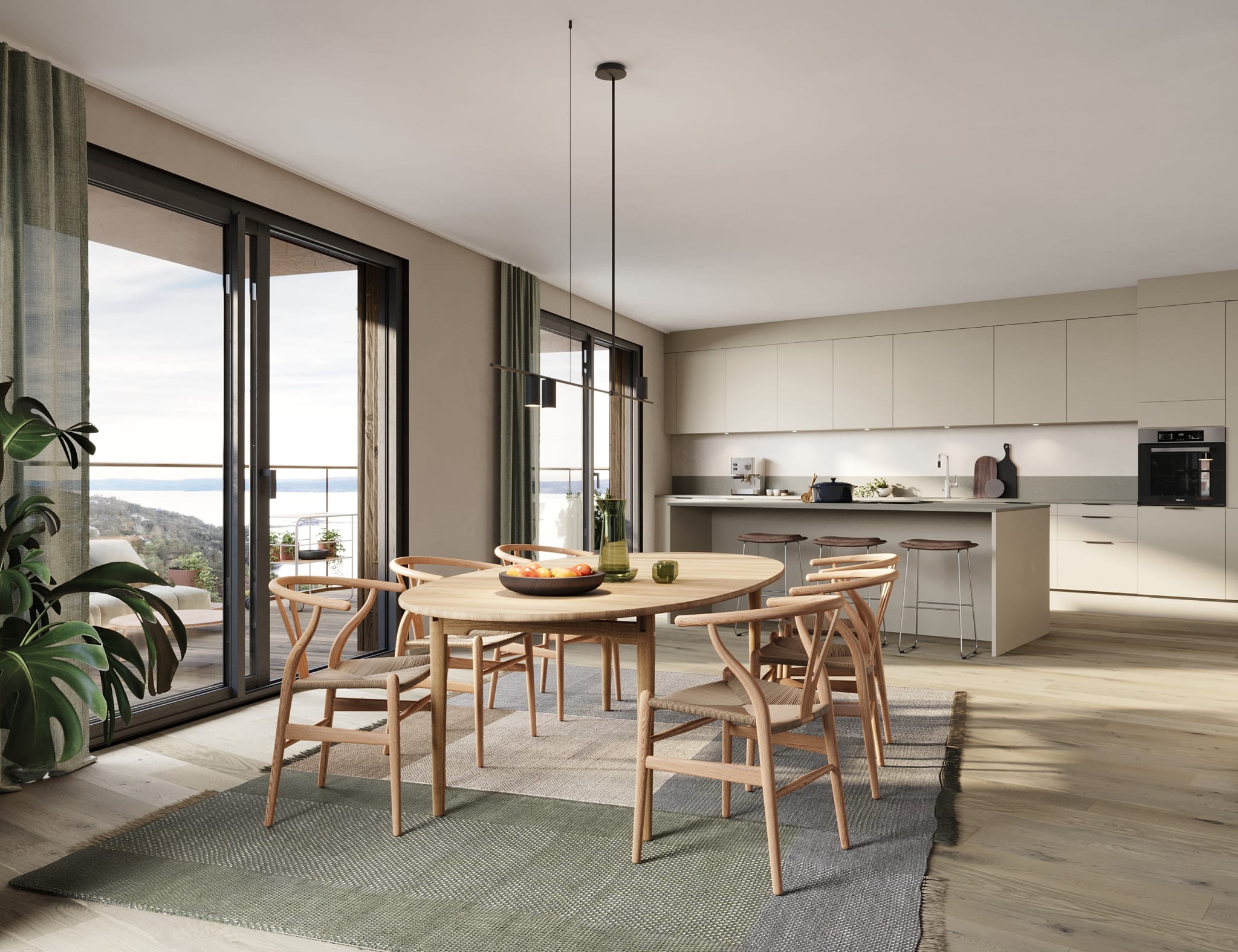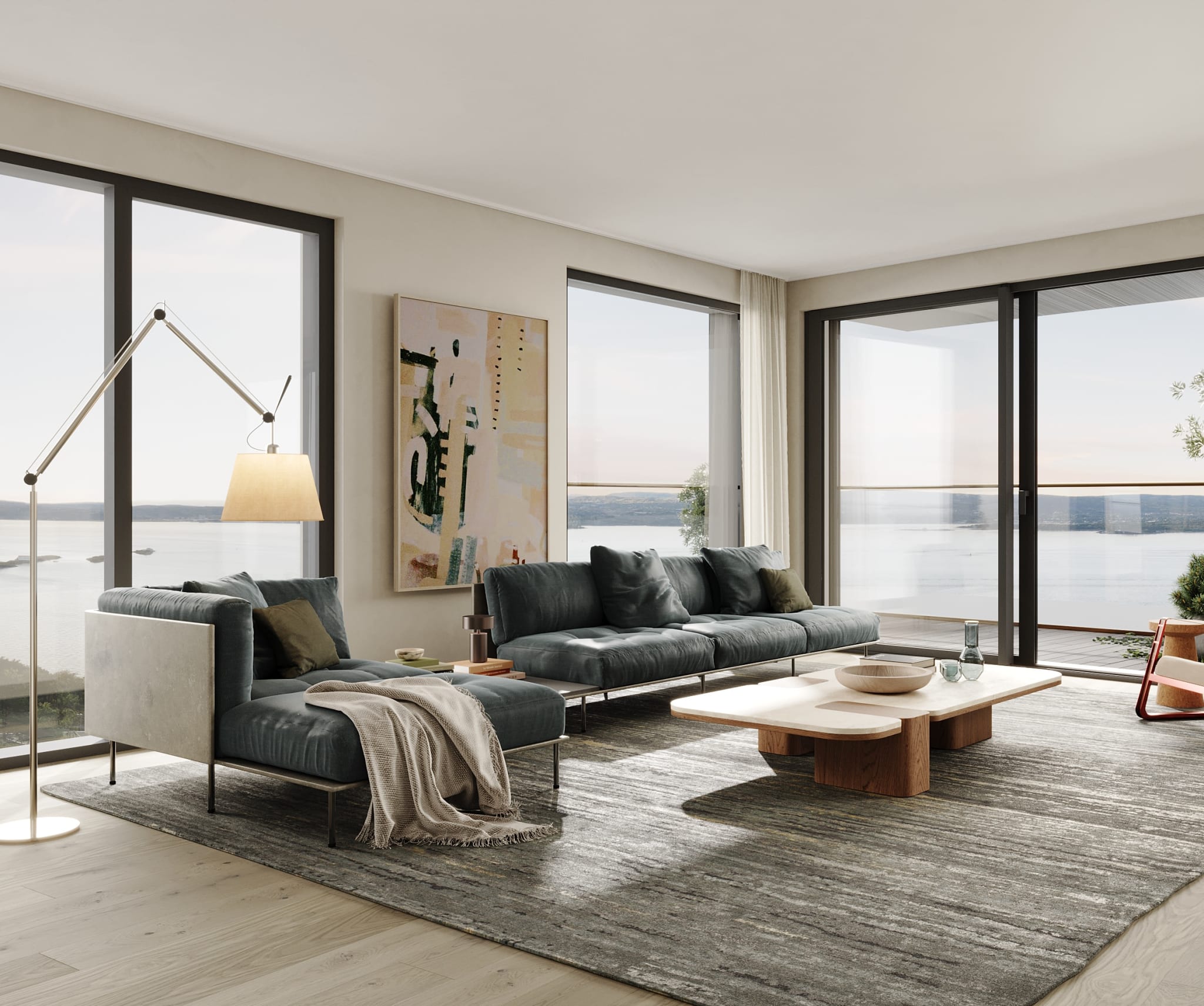 Med stilrene detaljer og delikate materialvalg setter Fjordhøyden en ny standard for hverdagsliv ved fjorden. Leilighetene blir romslige og innbydende, med store vindusflater som viser frem den fantastiske utsikten over fjorden. I tillegg får vinduene sort profil som vil ramme inn utsikten på en praktfull måte. Fargepaletten vil være i lune jordtoner og skape en god atmosfære.
