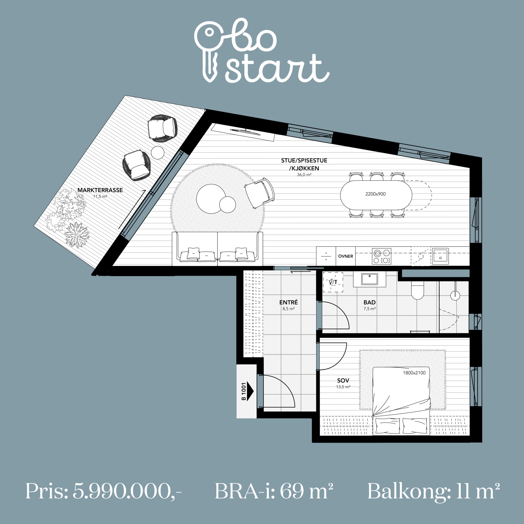 Vi har gleden av å presentere leilighet B101 med BoStart på vakre Fjordhøyden. Klikk her for å lese mer om BoStart.