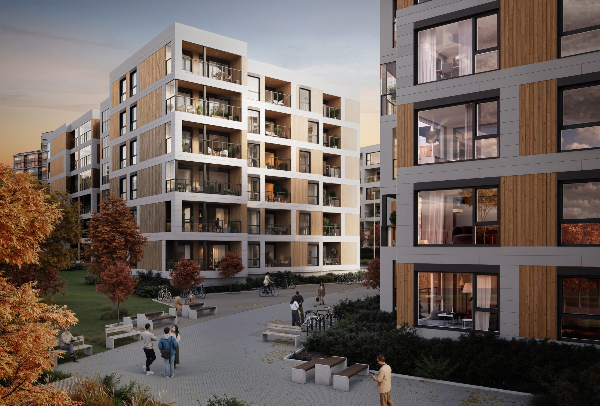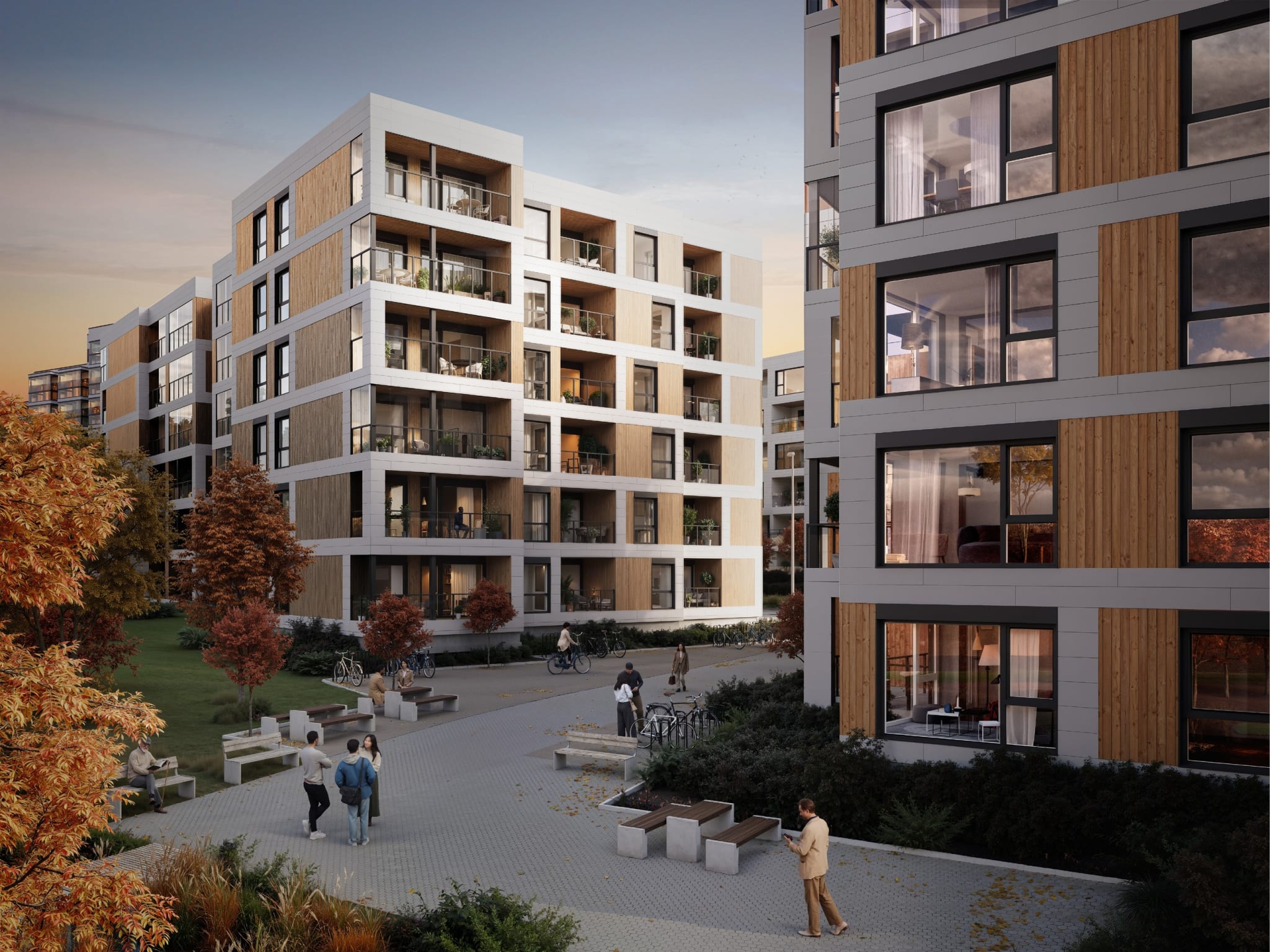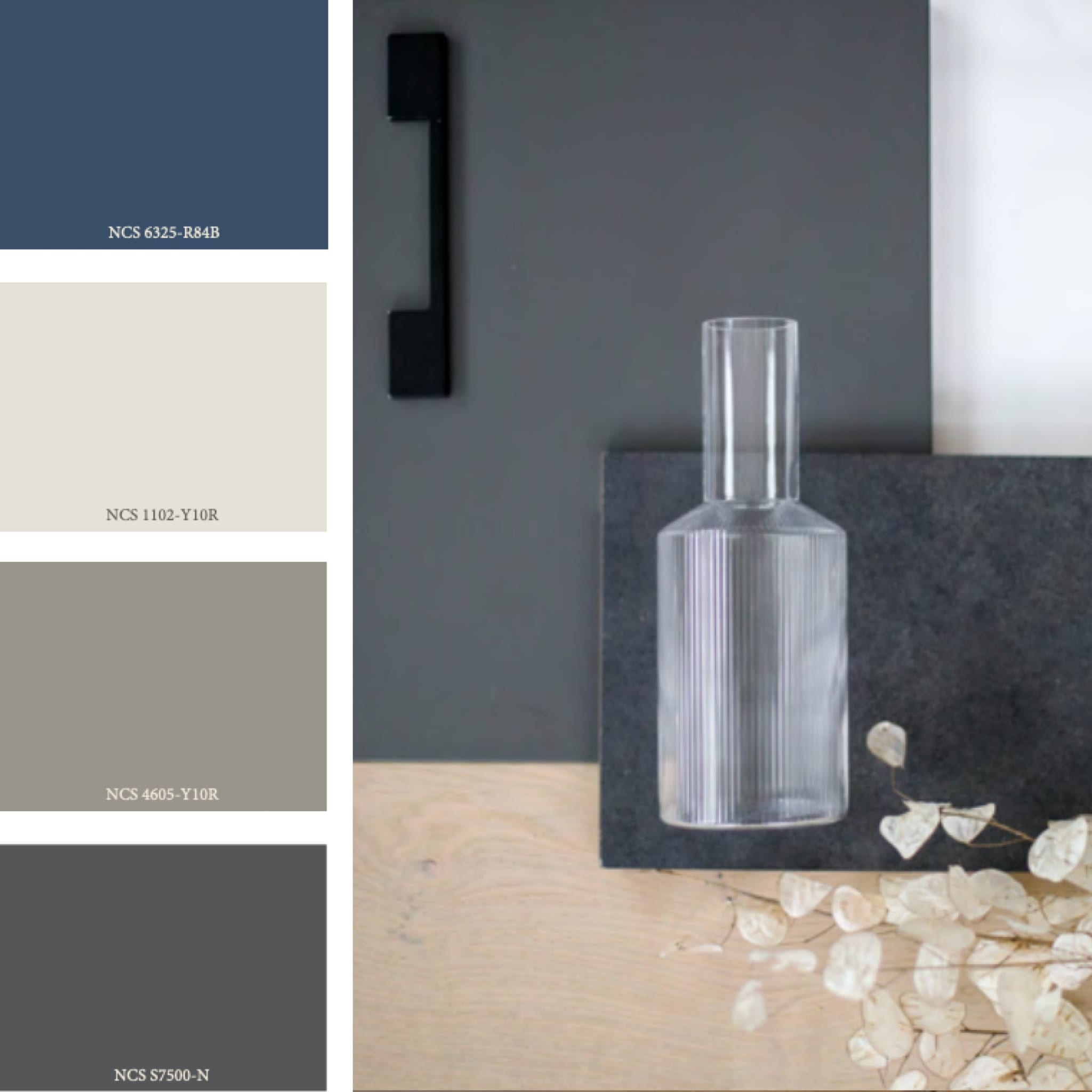Standard leveranse på Vesthagen er et hvitt moderne kjøkken med håndtak i rustfritt stål på over- og underskap. Den mørke grå benkeplaten står i fin kontrast til det lyse kjøkkenet. På gulvet er det 3-stavs eikeparkett i en lyspigmentert farge. Fargevalgene går fra hvitt til varmere toner, for å myke opp og tilføre varme. Dette konseptet skaper et fint utgangspunkt og en god ramme for å tilpasse din personlige stil.